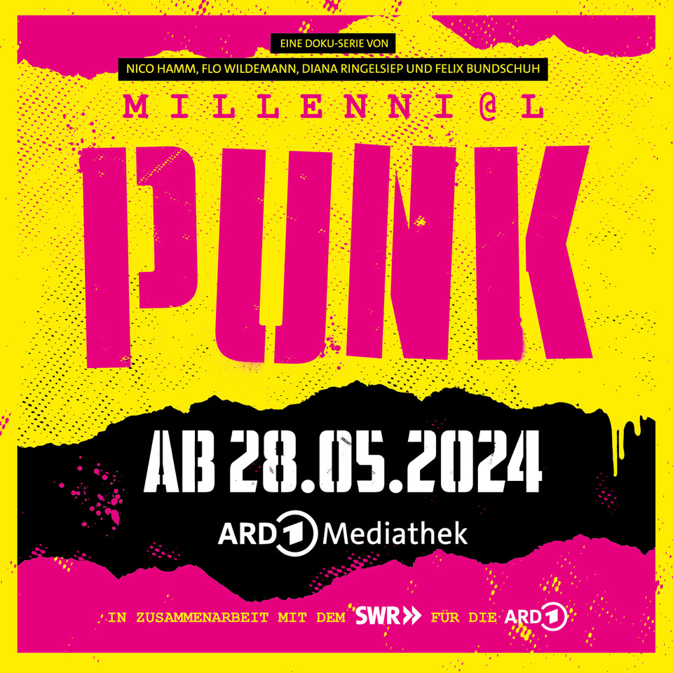 Die vierteilige Dokuserie „Millennial Punk – Eine Subkultur in Zeiten der Digitalisierung“ ist eine Produktion von Nico Hamm (Produzent), Flo Wildemann (Producer), Diana Ringelsiep und Felix Bundschuh (Drehbuch und Regie) in Zusammenarbeit mit dem SWR. Die 4 Folgen über jeweils 45 Minuten sind ab dem 28. Mai 2024 in der ARD Mediathek zu sehen!