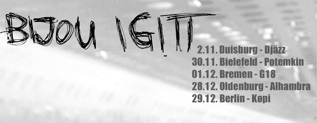 Unsere Labelband Bijou Igitt ist für euch „on the road“! Die Band ist großartig, schaut euch die Show an, wenn ihr die Gelegenheit habt!