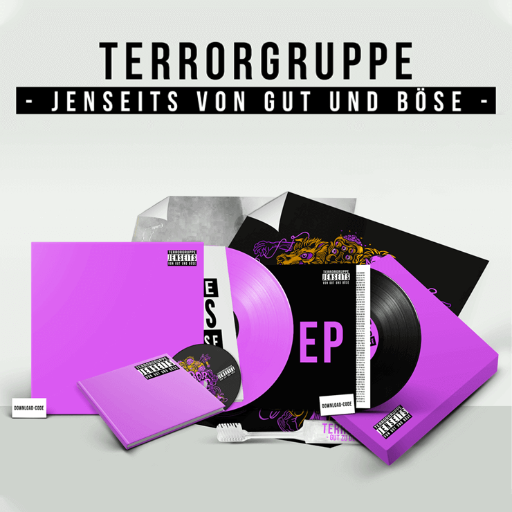 Das achte und letzte Studioalbum der Kreuzberger Blödeltruppe, die mich nun fast mein halbes Leben begleitet und die ich sehr zu schätzen weiß, ist da. Was darf man nun erwarten von den, inzwischen ins Alter gekommenen Kreuzbergern, die einfach nicht erwachsen werden wollen? Die Vorabsingle „Sie nationalistische Bullensau“ lies hoffen dass es wieder in Richtung Früh-Terrorgruppe geht. Pöbelnder MC Motherfucker, pogotauglicher Beat – Perfekt! Das „Lastwagenfahrer“ Lied was hinterher kam, wusste zu überzeugen und wird live bestimmt durch die Decke gehen. Allerdings ist Jenseits von Gut und Böse sehr viel poppiger als die älteren Scheiben. Alt + Delete, ADHS, Zusammenstehen und Sinnlose Beleidigungsstrategie gegen Fabelwesen (was für ein Name) sind, für mich, die absoluten Oberhits der Platte. Andererseits gibt es auch Songs wie „Alexandra“, „Fettes betrunkenes dummes Schwein“ und die Klavierhymne „Der Trottel“ die ich ganz unerträglich finde. Teile mancher Songs finde ich textlich irgendwie zu gewollt frech, Trottel zu gewollt hymnenhaft. „Krieg ist super“ hat einen genialen Text, aber musikalisch haut er mich nicht so um. Ich mag die schnodderigen Songs am Liebsten aber ich finde nach mehrmaligem Hören auch Easy Jet ganz gut. Archi hat eine der besten Punkerstimmen die es gibt und wenn der MC bei „Alt + Delete“ erzählt, dass Oma keine Spotify Listen machen soll, und am Anfang von „Zusammenstehen“ seine fünf Minuten bekommt ist dieses spezielle Terrorgruppe Rotzlöffeltum wieder da. Ein Grinsen huscht über mein Gesicht und ich verdrücke eine kleine Träne der Freude. – Die neue Terrorgruppe Platte ist da und das Leben ist gut. terrorgruppe.com Ullah