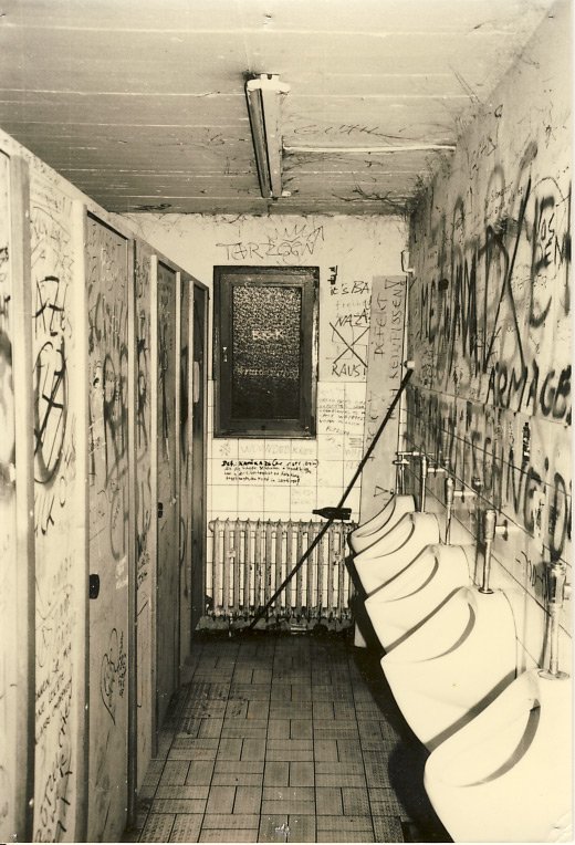 [schwer in Fahrt] Und cancel culture war unser Ding damals. Wir haben Funpunk verachtet. Ihr könnt woanders lustig sein, aber nicht in unserem Laden. Tschüss. Und euer Demo-Tape können wir nicht zurückschicken, liegt irgendwo im Eimer. Und wenn die Texte zu dumpfbackig waren, ging halt auch nix für die Bands. Großartig diskutiert wurde das nicht. Warum auch? Es gab ja kein Recht darauf, in unserem Laden, vor unserer Szene zu spielen.
