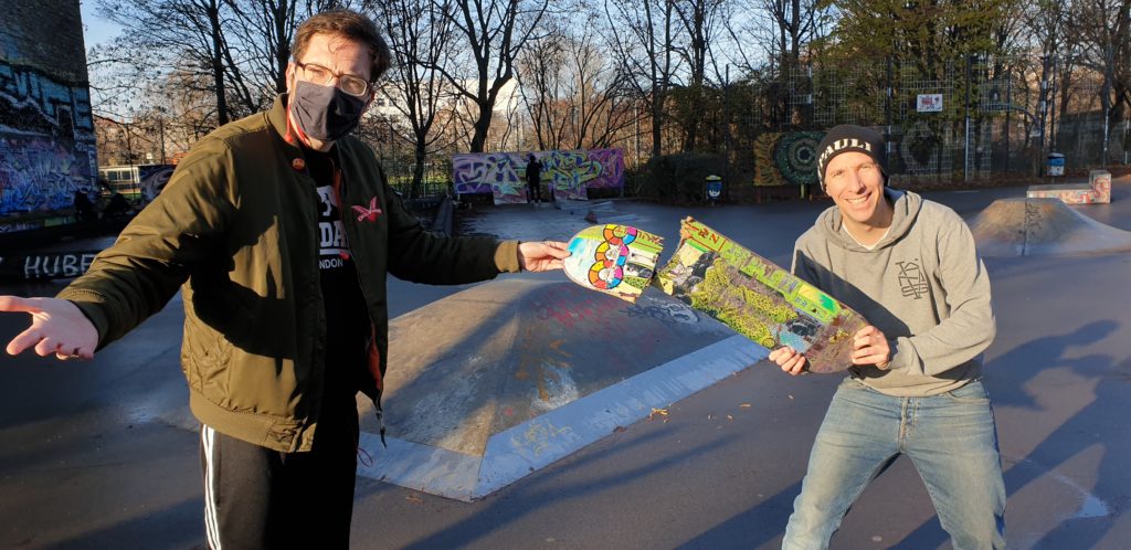 Dann wird am Ohrfeigenbaum gerüttelt! Nein, Quatsch. Aber schwierig… Boah, jetzt kann ich nicht mehr ruhig schlafen. Man muss präventiv handeln. Ich habe aber auch keinen Bock, denen das aufzudrängen. Wir hören jetzt nie groß Punk zusammen oder so. Und wenn wir mit der Band was machen können die mit, wenn sie Bock haben. Wenn sie keinen Bock haben, bleiben die eben zuhause. Aber ich rede schon mit den Kindern über Politik, wenn es sich ergibt. Letztens haben wir ein Plakat mit den Opfern von Hanau gesehen und meine Tochter wollte wissen wer das ist. Da musste ich das einer Siebenjährigen erklären, dass diese menschen von einem Nazischwein erschossen wurden, aber die versteht das auch. Natürlich ist es schwierig einem Kind zu erklären, was Nazis sind. Inzwischen haben die das aber verstanden, dass es Leute sind, für die andere Menschen nichts wert sind. Die beste Freundin meiner Tochter hat eine dunkle Hautfarbe und als ich ihr das erklärt habe, hat sie gemerkt, dass Nazis ihre beste Freundin blöd finden würden. So funktioniert das. Wenn man das nicht mit dem Vorschlaghammer erklärt, sondern wenn die selbst fragen, kommt man schon auf den richtigen Trichter.