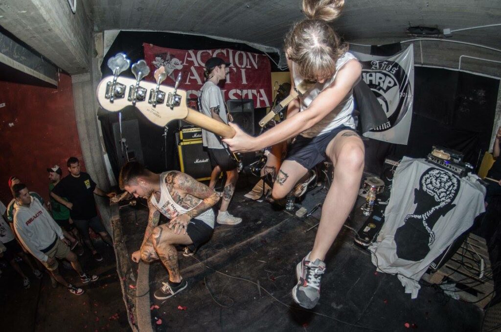 Das mir nen Mann erklären wollte, wie ich Bass spielen soll oder ähnliches hab ich zum Glück bisher nicht erlebt. Aber Mackerei auf Konzerten kommt schon öfter vor. Von aufdringlichen, übergriffigen Typen beim Festival über Typen, die meinen „No clit in the pit“ sagen zu müssen, weil sie es nicht ertragen können das auch FLINTA* moshen können und wollen und Typen, die denken, du musst erstmal beweisen, dass du einen „Platz in der Szene“ haben kannst, weil du eine Frau oder nicht cis-männlich bist… es gibt echt einige Abgründe.