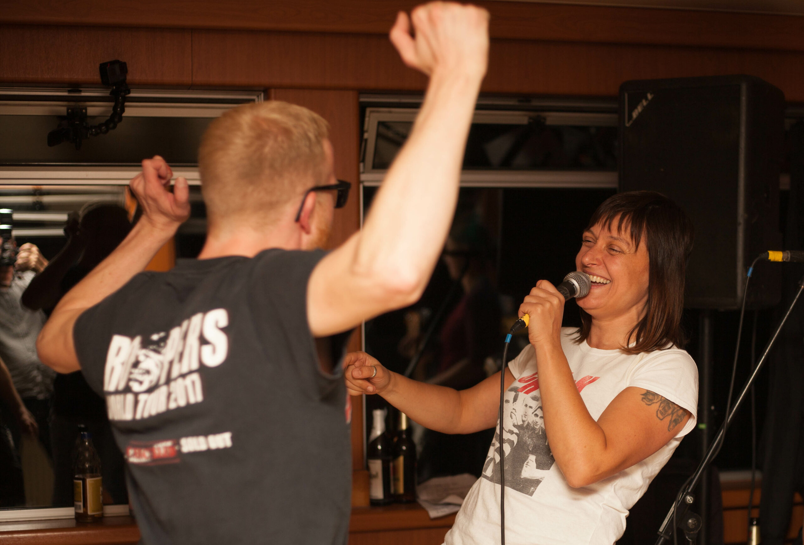 Tatsächlich kam es schon vor, dass man nicht wahrgenommen wird, aber meist ist das dem Gegenüber dann, wenn es sich aufklärt, dass ich im Übrigen Teil der Band bin, etwas unangenehm. Aber auch so ein Missverständnis zaubert mir nur ein Schmunzeln ins Gesicht. Das ist jetzt auch bei Punk Konzerten nicht anders als bei Oi! Konzerten. Meistens kann ich bei blöden Sprüchen oft gut kontern und hab großen Spaß an einem kleinen verbalen Hin und Her. Poser und Typen, die auf dicke Hose machen kann ich eh nicht ernst nehmen, daher fällt es mir leicht, die Sache entspannt anzugehen.