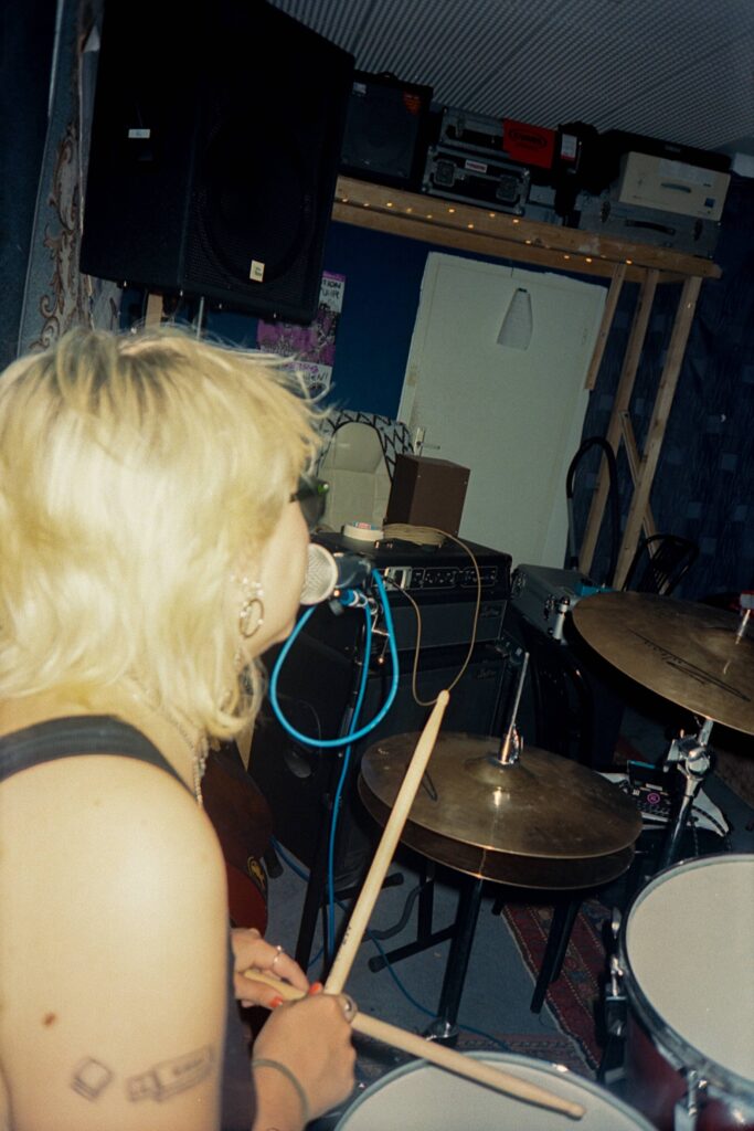 Uns gibt es jetzt seit ein bisschen mehr als einem Jahr, wir haben uns zwar schon vor Corona kennengelernt, aber erst als es dann mit dem ersten Lockdown losging angefangen regelmäßig im Proberaum zu spielen. Wir haben uns tatsächlich über Instagram gefunden und dann ziemlich schnell gemerkt, dass es passt. Zu der Zeit haben wir sogar in der gleichen Straße gewohnt (und kannten uns nicht – verrückt oder?). Vorher habe ich mit meiner ersten Band The Tapers schon Musik gemacht und hab es auch nie als Problem empfunden, dass ich die einzige Frau war – trotzdem hat es mich dann irgendwann gereizt eine Grrrlband zu gründen.