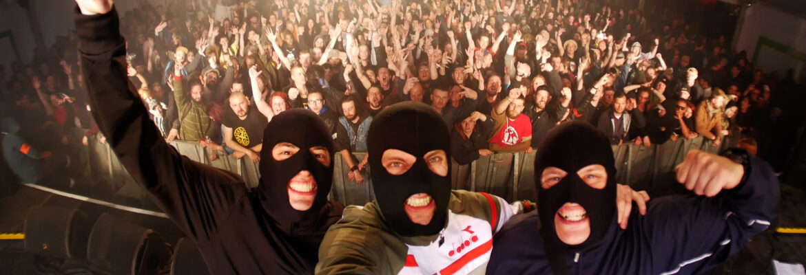 Stress mit Staat, Nazis und Cops sind Moscow Death Brigade durchaus gewohnt. Die politisch aktiven „Circle Pit Hip-Hopper“, wie sich das Punk/Rap/Techno Trio aus Moskau selbst nennt, können schon seit Jahren nicht mehr in Russland auftreten und bleiben auch auf Tour maskiert. Seit ein paar Wochen ist hat sich die Situation deutlich verschärft: Putins Krieg in der Ukraine trifft auch die Meinungs- und Kunstfreiheit in Russland. Zensur, Verbote und Überwachung nehmen zu, selbst Künstler:innen außerhalb von Subkulturen kriegen das zu spüren, Szenebands und Aktivist:innen sowieso. Das Land „einfach so“ zu verlassen wird schwieriger, offene und sichere Kommunikation, auch ins Ausland, muss geplant und überdacht sein. Auch das angefragte Interview lässt ein paar Tage auf sich warten, bevor es über Email zustande kommt. Im Schriftwechsel erzählt Bandmitglied „Ski-Mask G“, wie riskant und problematisch künstlerische Aktivitäten und öffentliches Engagement in Russland gerade sind und warum es trotzdem wichtig ist, Haltung zu zeigen. Ende März soll es für die Moscow Death Brigade auf große Europa-Tour gehen, inzwischen sieht es gut dafür aus.