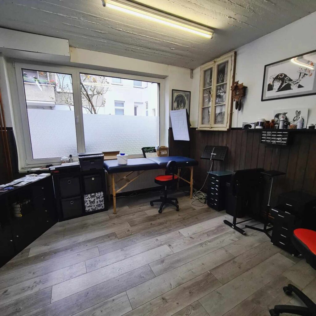 Im Moment wird der Raum zum Tätowieren genutzt, ist aber auch als Atelier, Büro etc geeignet.