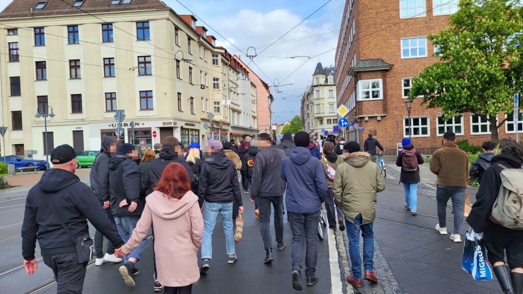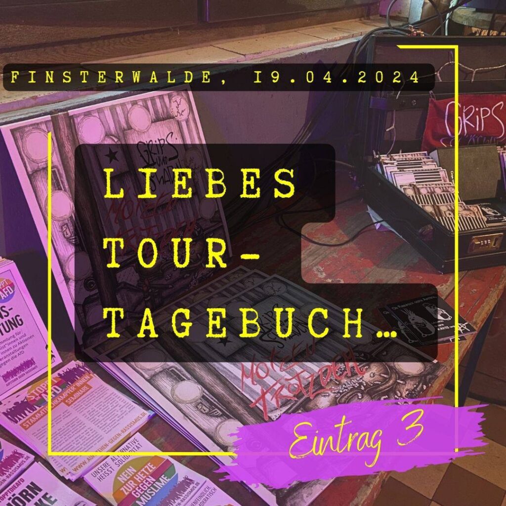 Und komisch. Genau weil das so ist, komm ich nicht richtig an in diesem Frühlinx-Moment. Es fühlt sich surreal an, nach der Tour. Der Struggle in der Provinz fühlt sich „echter“ an. Ist er vielleicht nicht. Aber für den Moment habe ich das Gefühl, die linke Szene in Hamburg, Göttingen, Berlin, Leipzig, Köln – allet auflösen und rin in die Provinz. Wär doch lustig: 500 berliner Antifas besetzen einfach mal einen Straßenzug in Magdeburg. Weil’s provoziert. Und weil’s im :aboutblank aufm Dancefloor vllt nich mal auffällt, dass sie fehlen. Vielleicht machen wa ooch mehr solche Touren wie diese.