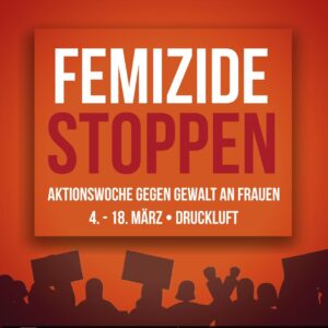 Rund um den Frauenkampftag finden bei uns in Kooperation mit dem Frauenhaus Oberhausen und der Frauenberatungsstelle eine Aktionswoche gegen Gewalt an Frauen statt. Dazu stellen wir im Neuen Café alle von @femizidestoppen gesammelten Fälle 2025 aus und schauen auf das letzte Jahr zurück.Was fordern wir? Was wurde bisher erreicht? Was können wir jetzt tun? Am …